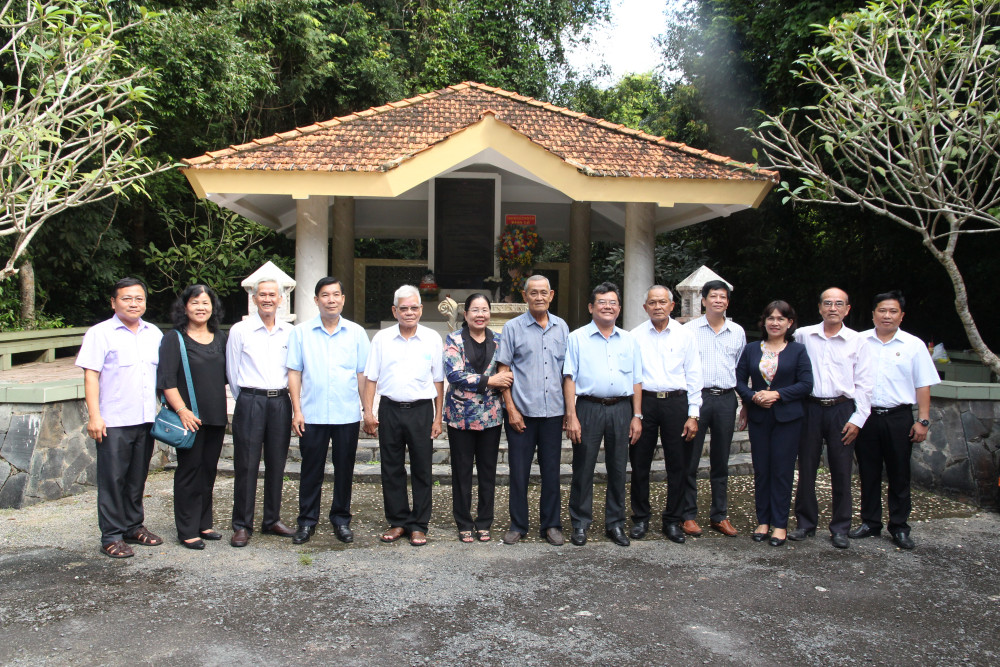 Former leaders of the Vietnam Fatherland Front of Tay Ninh province through the periods visited the memorial stele of the National Liberation Front Base Relic Site of South Vietnam