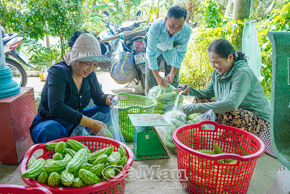 What is valuable about Mr. Quoc is his safe, environmentally friendly farming mindset. Since the locality has promoted the ecological farming model, he has completely switched to using biological pesticides and composting fish manure from catfish, miscellaneous fish, or bitter melons with worms to make fertilizer. “It is very effective, the plants are healthy, the fruit is beautiful, and the cost of fertilizer is significantly reduced,” he said. Thanks to that, his bitter melons retain their natural green color, are crispy, have few pests, and are favored by traders.
