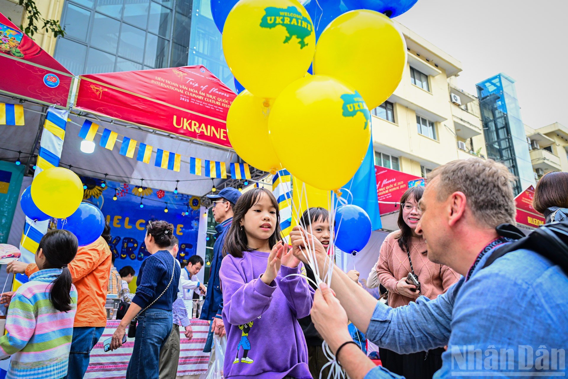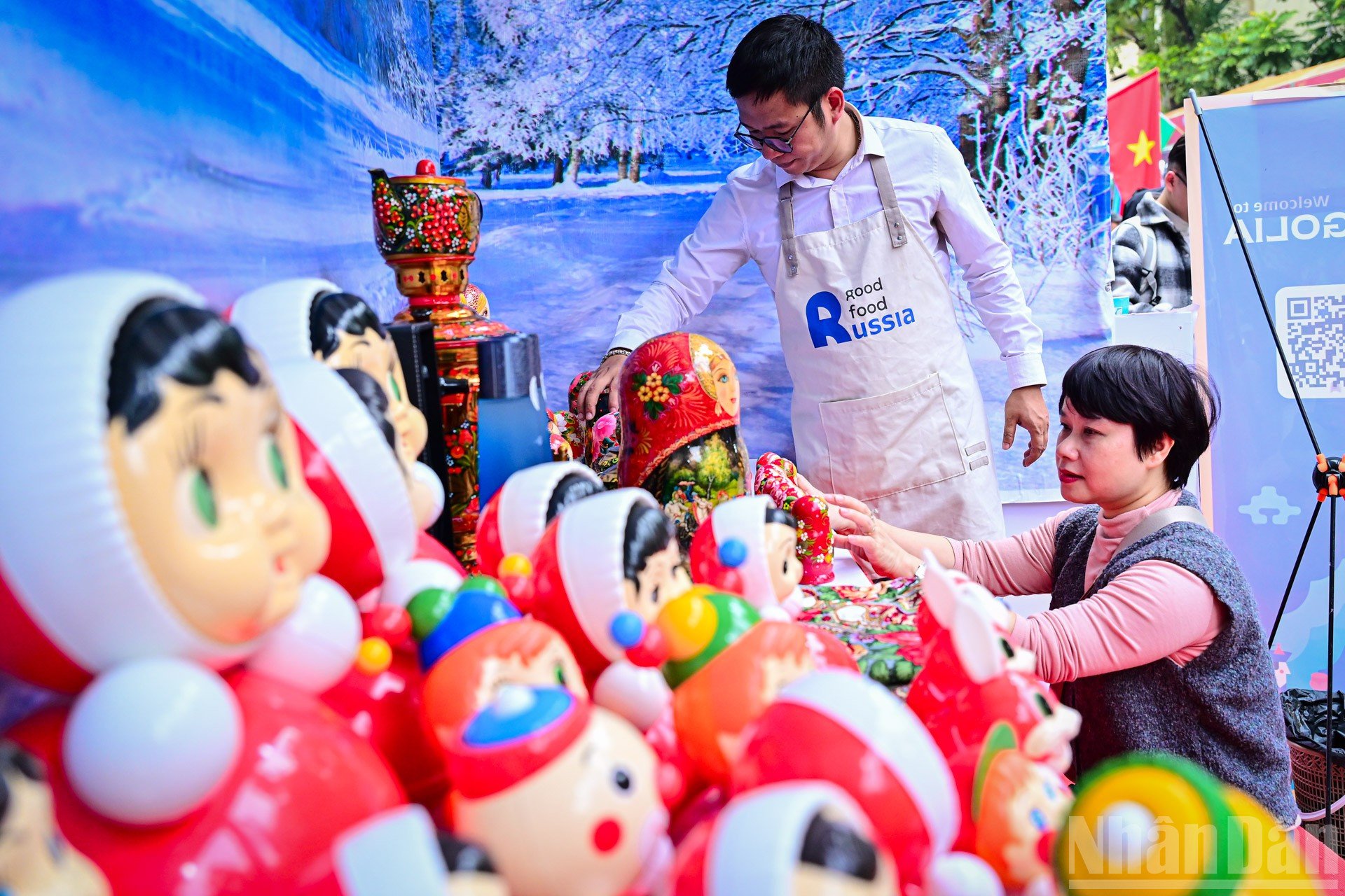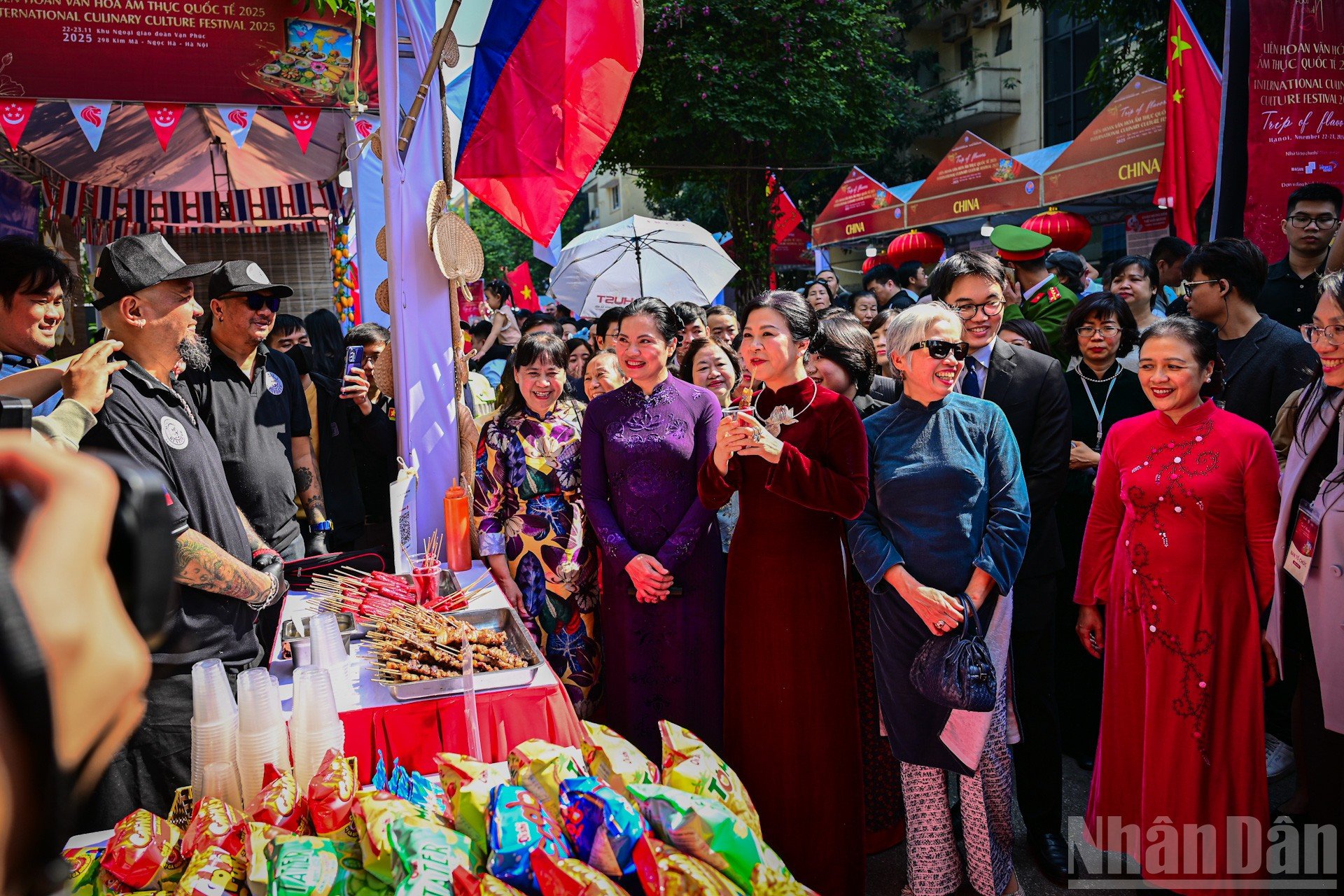Ms. Ngo Phuong Ly, wife of General Secretary To Lam, and delegates performed the opening ceremony of the 2025 International Culinary Culture Festival. General Secretary Ngo Phuong Ly's wife and delegates visited the booths of the countries attending the Festival. Ambassador Extraordinary and Plenipotentiary of the People's Republic of China to Vietnam Ha Vi visits the booths. Argentine Ambassador Marcos Bednarski enthusiastically supported his country's pavilion. International diners have the opportunity to experience typical Vietnamese cuisine from all regions. The spirit of friendship between countries is demonstrated at the 2025 International Food Culture Festival, through dishes and typical cultural colors of the booths, citizens of different countries have the opportunity to connect and understand each other better. The baked dish was prepared by a Sri Lankan chef at the Festival. Visitors were excited about the stalls selling Russian souvenirs and toys, such as matryoshka dolls or Russian tumbler dolls that are familiar to many generations of Vietnamese people. Russian friends are full of enthusiasm and charm with their country's unique culture and cuisine. Tacos are a traditional Mexican dish consisting of a shell made from corn or wheat flour, folded or rolled around a variety of fillings such as beef, chicken, fish, or vegetables, attracting diners to experience. Ukraine booth attracts visitors with its typical foods. Palestinian bread is popular with diners and sold out in a short time. International visitors enjoy the culinary space at the Festival. Ancient Shan Tuyet tea of the Tay ethnic group in Lao Cai province is well received by tourists. With a larger scale and nature than every year, this year's Festival has gone beyond the framework of a normal exchange activity to become a symbol of culinary cultural exchange, friendship, sharing and international solidarity. The festival sent meaningful charity gifts to some localities affected by natural disasters and floods.