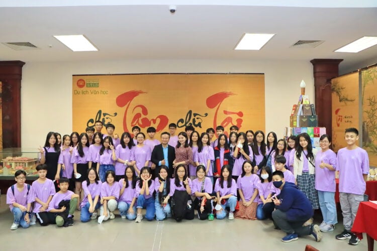 The students participated in an exciting literary tour. They also had the opportunity to hear from two guest speakers, poet and doctor Do Anh Vu and poet Lu Mai, who shared the touching story of the poet Xuan Quynh and playwright Luu Quang Vu. Afterwards, everyone joined in singing the song "Boat and Sea," set to Xuan Quynh's poem, right in the exhibition space.
