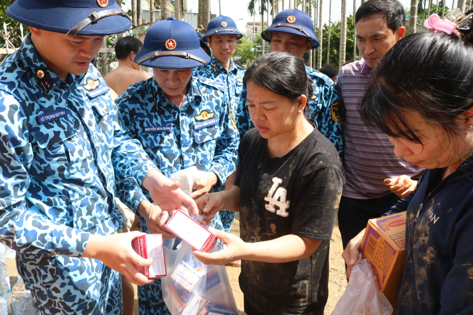 At the destinations, the brigade supported 200 gifts including necessities, purified water...; at the same time, sent a medical team to distribute and instruct the people on the use of essential medicines. Previously, from November 19, the brigade coordinated with the Naval Region 4 Command to mobilize boats and vehicles to participate in rescue, rescue, and bring people from flooded areas in Khanh Hoa province to safe shelters.