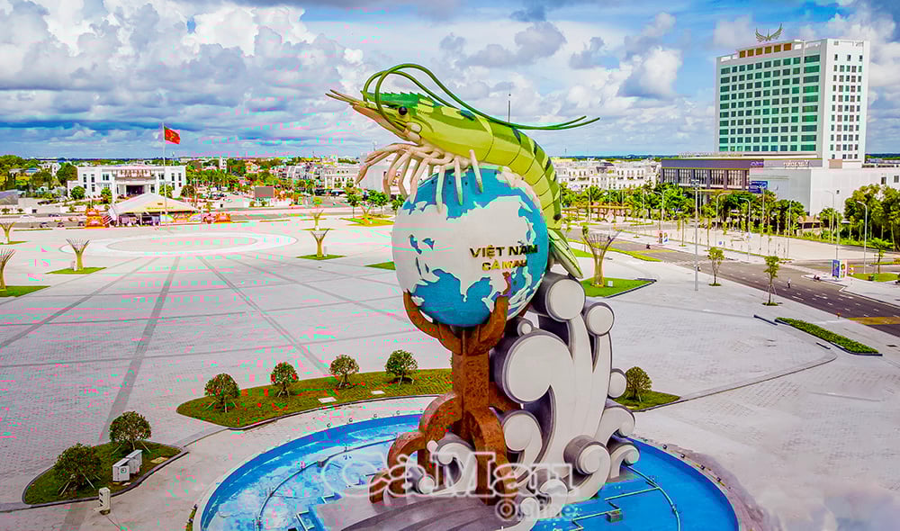 The symbolic construction "Ca Mau Shrimp" at Phan Ngoc Hien Square (An Xuyen Ward) - the venue for the Ca Mau Crab Festival in 2025.