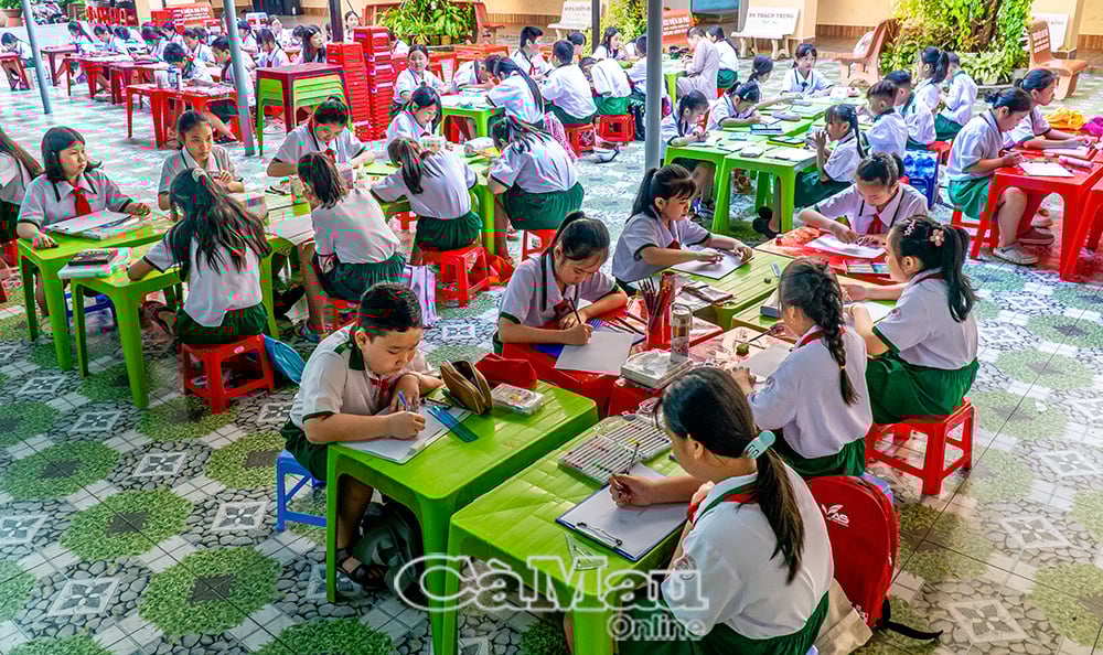 Extracurricular activities and student activities in the ward took place enthusiastically, attracting a large number of students to participate (Photo taken at Nguyen Tao Primary School).