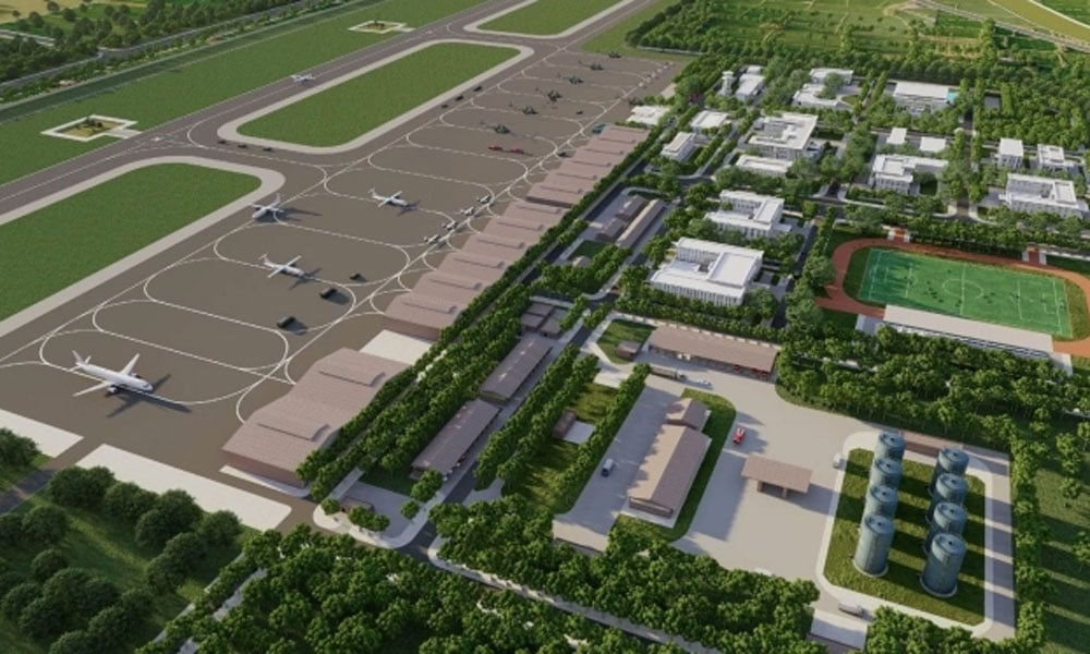 The airport is planned with two pairs of parallel runways, 1,800 meters apart, ensuring independent take-offs and landings. By 2030, the project will construct parking areas in front of the VIP terminal, passenger terminal, cargo terminal, and maintenance area with approximately 83 parking positions; this will be expanded to approximately 123 positions by 2050.