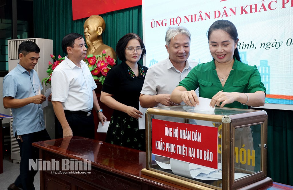 Speaking at the launching ceremony, Comrade Pham Thi Phuong Hanh, Provincial Party Committee member, Director of the Department of Health said: Responding to the Appeal Letter of the Standing Committee of the Vietnam Fatherland Front Committee of Ninh Binh province to support people to overcome the damage caused by storms No. 10 and No. 11, with the spirit of "mutual love and support", all cadres, civil servants, public employees and workers in the health sector with a heart of compassion, social responsibility and deep sharing, join hands to contribute to support people in areas affected by storms No. 10 and No. 11. Each contribution, no matter how small or large, has great significance, contributing to helping people overcome difficulties, stabilize their lives, restore production, and feel secure in working and studying. This is also a practical action, demonstrating the spirit of humanity, social responsibility and noble qualities of health workers.