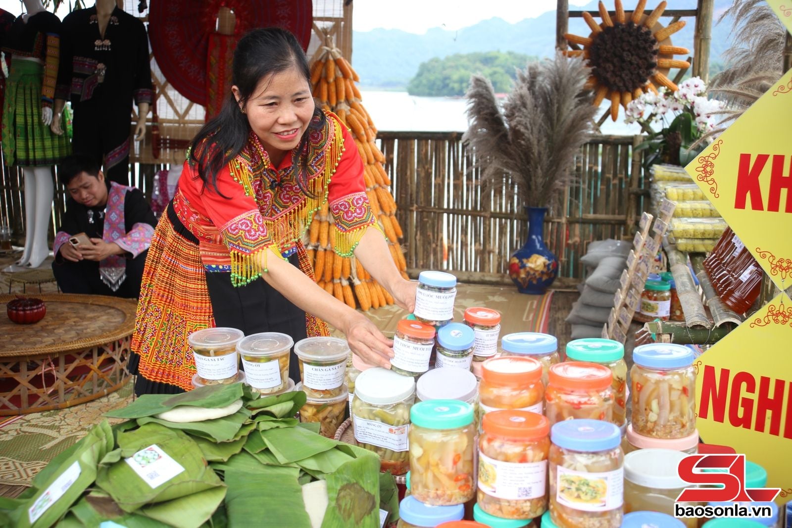 The stalls were arranged vividly, reflecting the rich traditional culture. Among them, the experiential stall of the Thai ethnic group attracted considerable attention from visitors with its activities showcasing agricultural products, cuisine, and distinctive living spaces.
