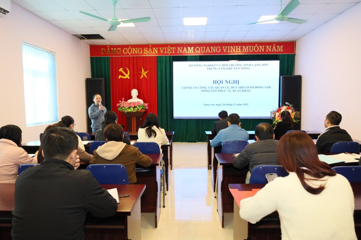 On the morning of November 26, 2025, the Provincial Agricultural Extension Center organized a training conference on management and maintenance of agricultural product packaging facilities for export for 30 delegates including agricultural extension officers and members of enterprises and cooperatives with agricultural product packaging facilities for export in the province.