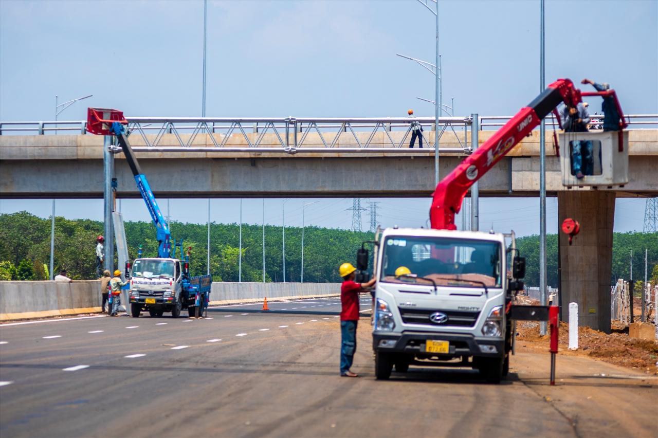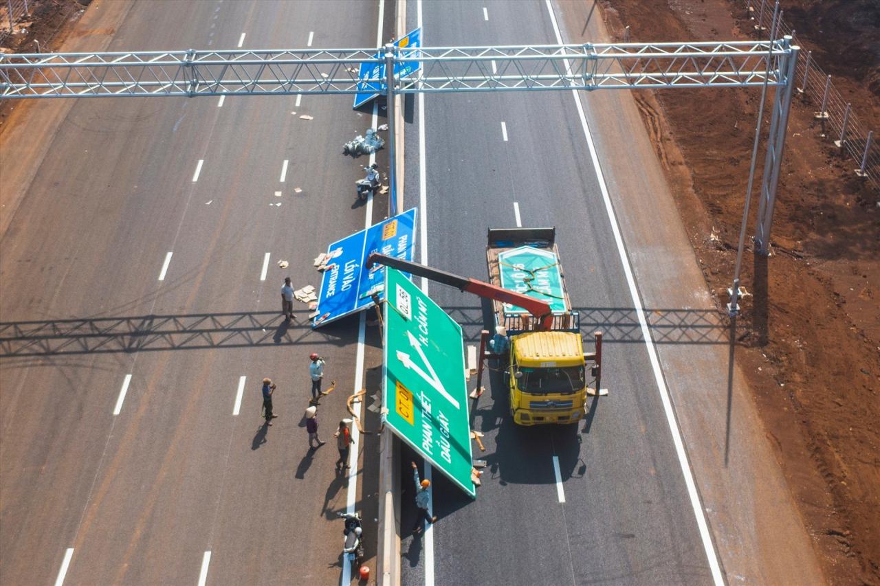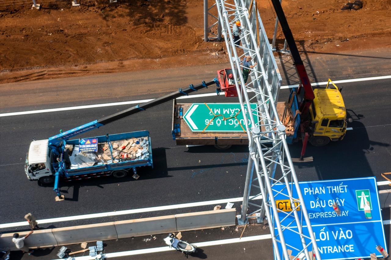 The 99 km Phan Thiet - Dau Giay Expressway, passing through Dong Nai and Binh Thuan provinces, connecting Ho Chi Minh City - Long Thanh - Dau Giay Expressway with Phan Thiet and connecting with Vinh Hao - Phan Thiet Expressway, will be officially inaugurated and put into operation in just one day. According to the reporter's records, the final works such as hanging signs on the gantry, installing lighting systems, guardrails, toll stations, etc. are being urgently completed.
