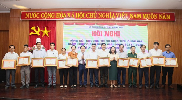 On this occasion, the Chairman of the Provincial People's Committee awarded Certificates of Merit to 15 collectives, 01 household and 12 individuals who had achievements in implementing the emulation movement "Quang Ngai for the poor - No one is left behind" in the period 2021-2025; awarded Certificates of Merit to 04 collectives who had achievements in contributing and supporting funding in implementing this emulation movement.