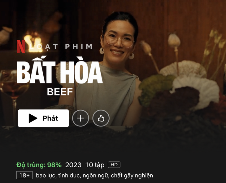 The movie Beef (Discord) is shown with a warning of "violence, sex, language, addictive substances" - Screenshot