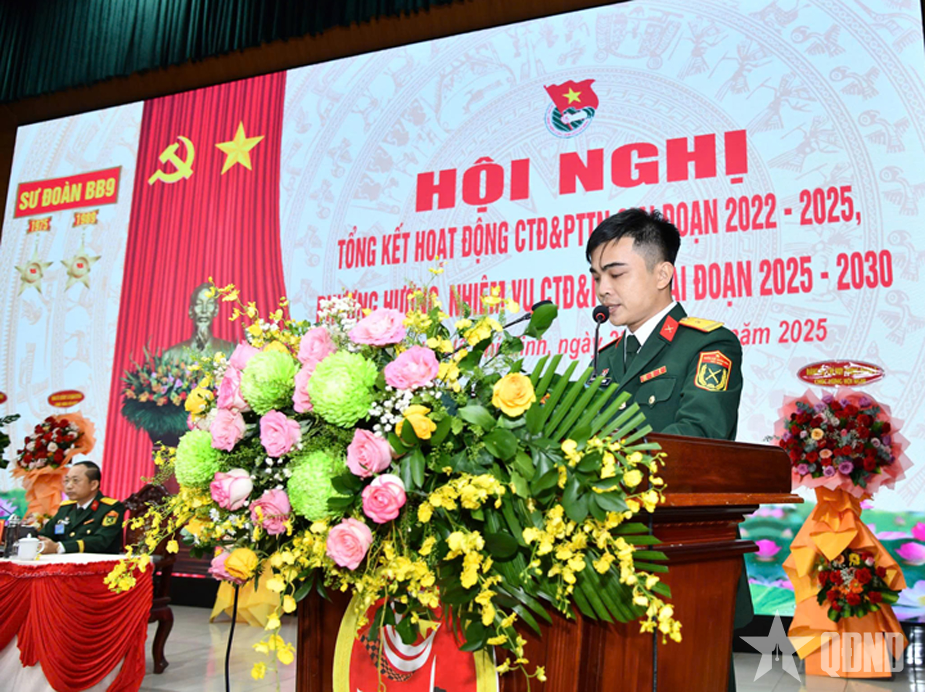Speaking at the conference, Colonel Pham Van Hong, Deputy Political Commissar of Division 9, requested the Youth Union organizations to continue to innovate the content and form of activities; increase the application of information technology and digital transformation; educate and foster outstanding Youth Union members, build a strong Youth Union organization, contributing to building a clean and strong Party Committee of the Division, a comprehensively strong unit that is "exemplary and typical".