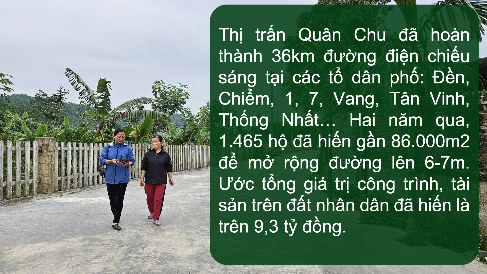 After more than a year since the administrative boundary merger, Quan Chu today is undergoing a strong transformation, becoming a civilized, bright, green, clean, and beautiful urban area, striving towards modernity. The town covers an area of over 53 square kilometers, with over 2,200 households divided into 19 residential groups, and 8 ethnic groups: Kinh, Tay, Nung, San Chay, Dao, San Diu, Hoa, and Ngai.
