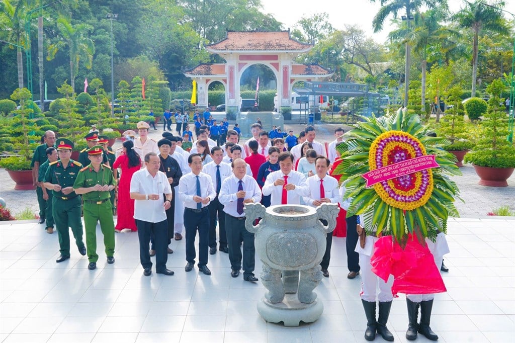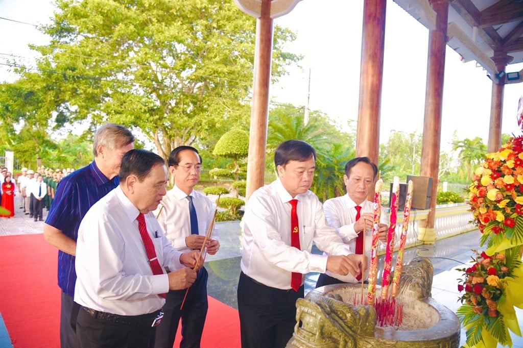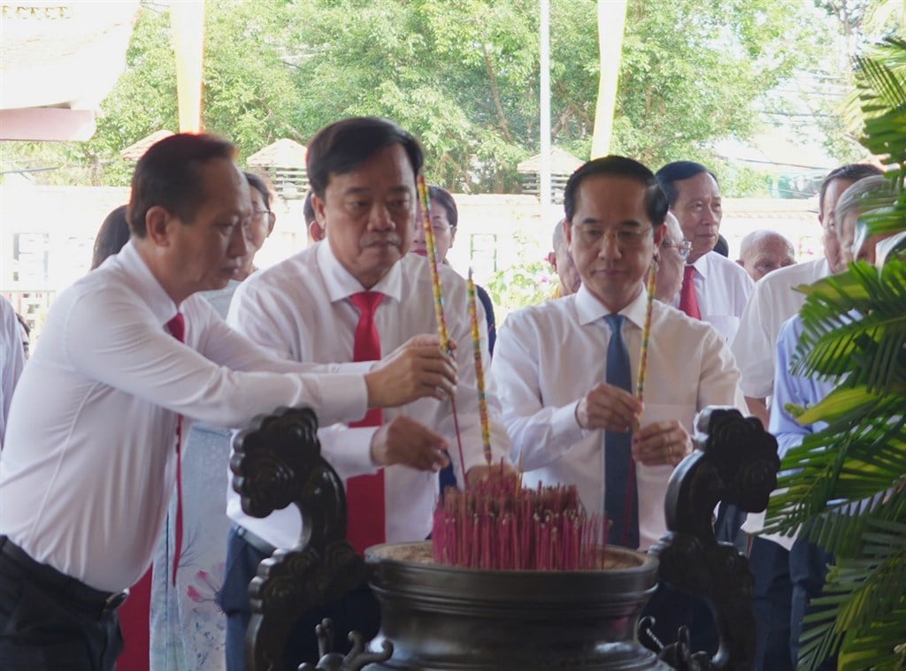 Accordingly, a delegation of officials from the Provincial Party Committee, Provincial People's Council, Provincial People's Committee, and the Provincial Committee of the Vietnam Fatherland Front visited and offered incense to President Ho Chi Minh at the Ho Chi Minh Memorial Temple (Chau Thoi commune) and at the Ho Chi Minh Memorial Area (An Xuyen ward).