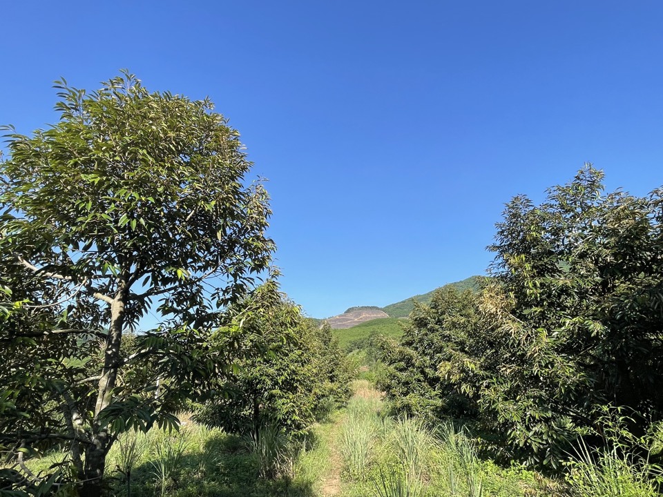 Next to Mr. Hanh's orchard is Mr. Ho Nguyen Duy Tan's Monthong durian orchard, also planted on land previously used for acacia cultivation. His 170 durian trees have already produced their first ripe fruits of the second harvest. On the next hill, Mr. Ho Duy Trung's nearly 500 durian trees promise to yield a substantial income.