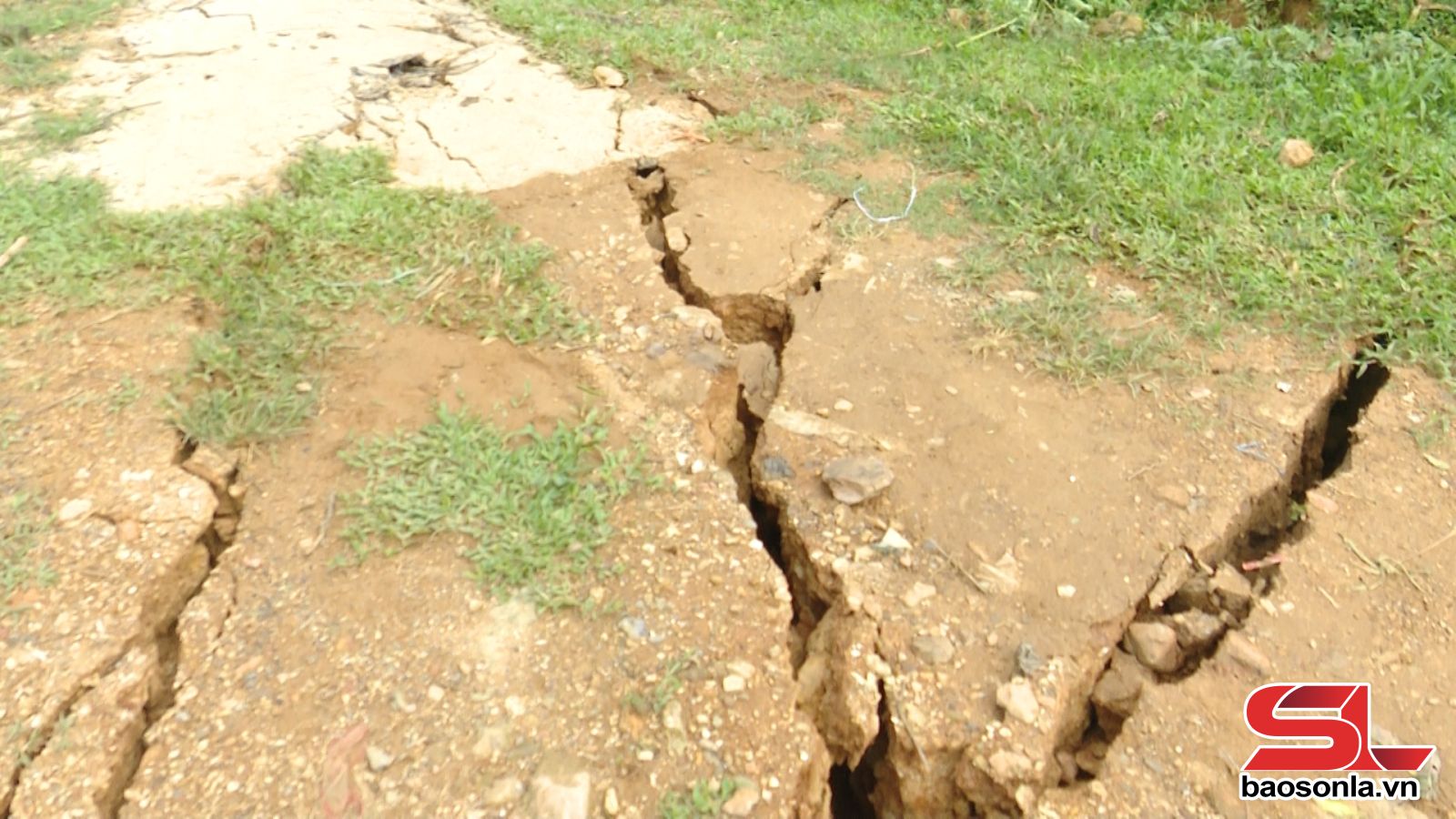 Two households, including Mr. Phung Duc Tien and Mrs. Dinh Thi Quynh, with a total of 10 people, are living in an area with serious cracks, breaks, and subsidence on the roadbed stretching nearly 100m, more than 50cm deep, with a high risk of landslides, affecting life and property.