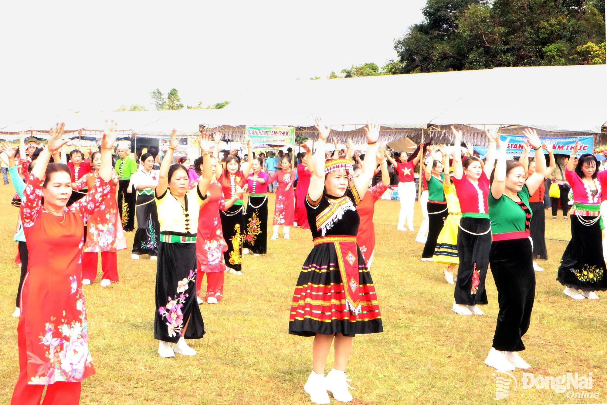 | Los habitantes de la comuna de Tho Son realizan una danza folclórica con trajes tradicionales de los grupos étnicos vietnamitas. Foto: Van Truyen |
