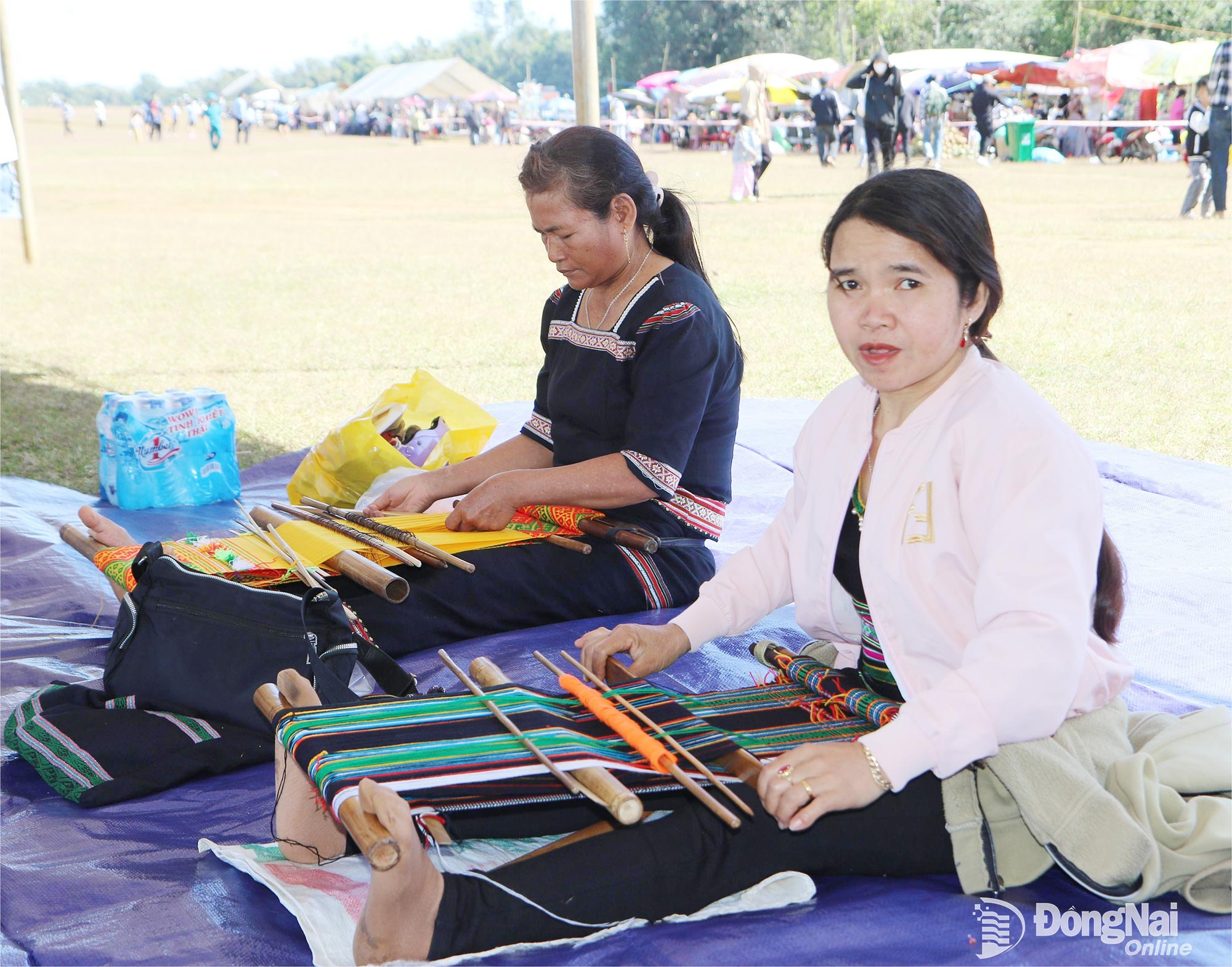 | Los habitantes de la comuna de Tho Son recrean el tejido de brocado en el Día de la Gran Unidad Nacional. Foto: Van Truyen |