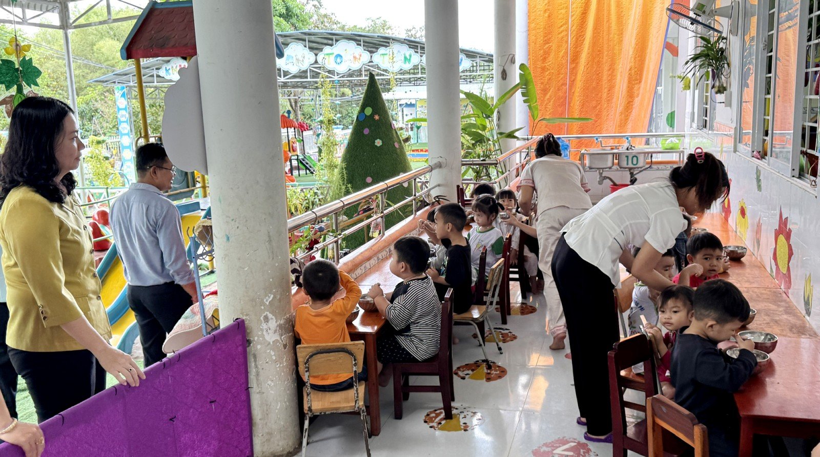 Mediante la encuesta, Mai Thi The, Secretaria del Comité del Partido y Presidenta del Consejo Popular de la comuna de O Lam, solicitó al inversor que agilizara los trámites para la aceptación y entrega del proyecto a las escuelas. Los consejos escolares continúan renovando las instalaciones pedagógicas, movilizando recursos sociales para la renovación de los patios, garantizando la higiene ambiental y previniendo epidemias en los centros educativos. Los departamentos especializados del Comité Popular de la comuna elaboran proactivamente planes de inversión y complementan el equipamiento y las instalaciones escolares para 2026.