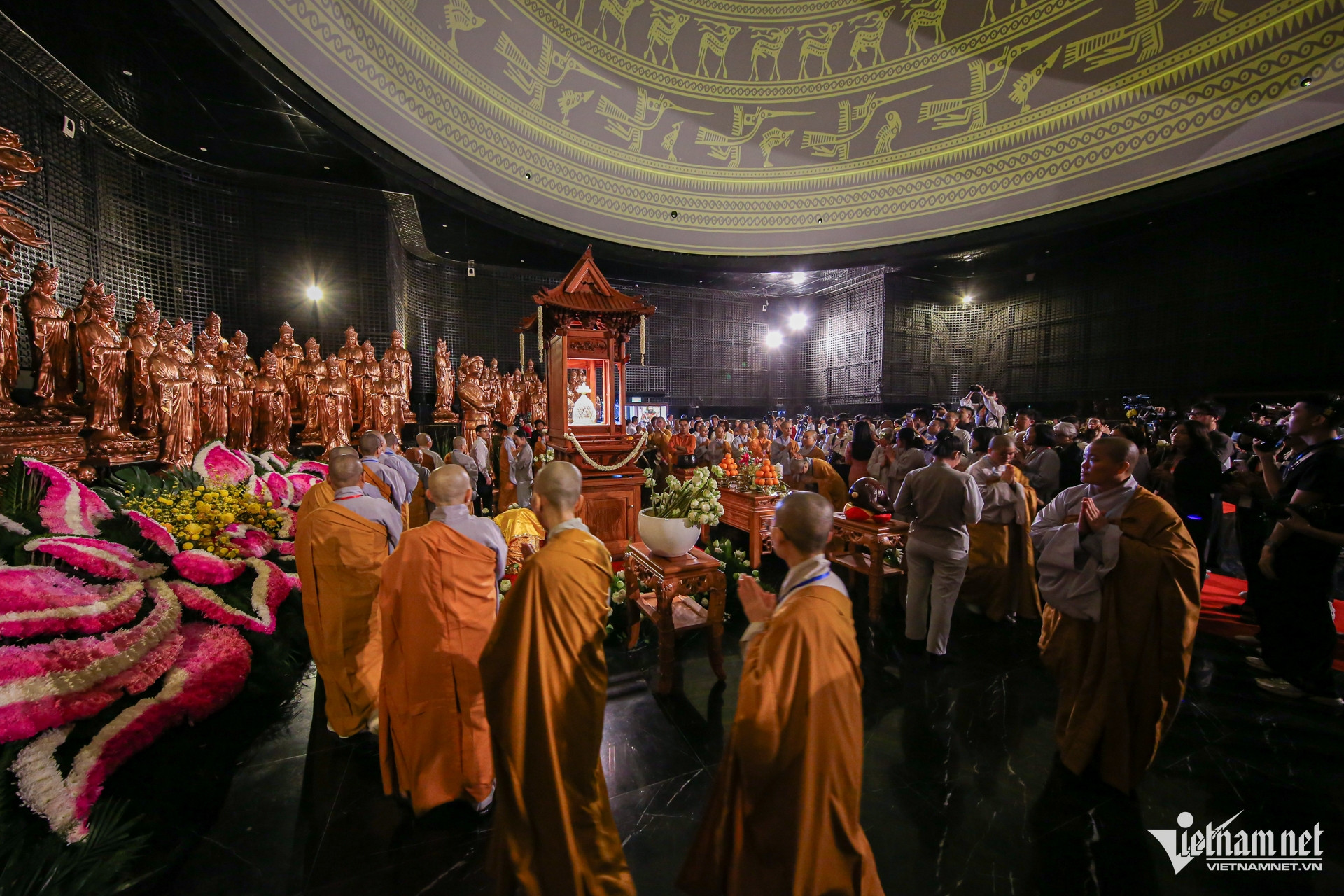 A las 14:30, la procesión con las reliquias de Buda llegó al pie del monte Ba Den (Tay Ninh). La delegación de Vesak que transportaba las reliquias de Buda al monte Ba Den incluía a 1200 delegados internacionales de más de 80 países, como India, Bután, China, Francia, Alemania, Nepal, Japón, etc.