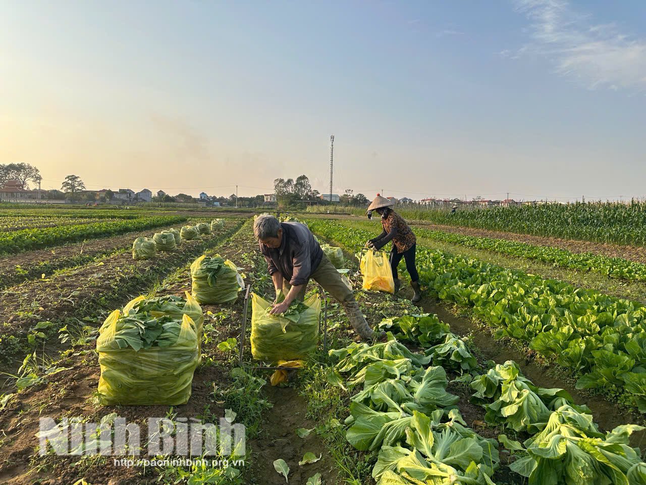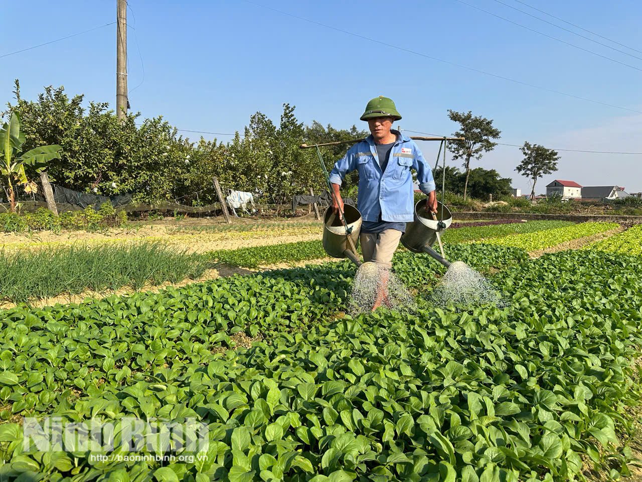 El ambiente de alegría también se extendió a los campos de la comuna de Yen Khanh. A pesar de tener más de 60 años, el Sr. Nguyen Van Xuan y la Sra. Bui Thi Nu (aldea de Dong Mai) aún cultivan con diligencia más de una hectárea de hortalizas, como hojas de mostaza, tomates y pepinos.