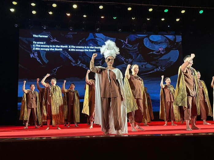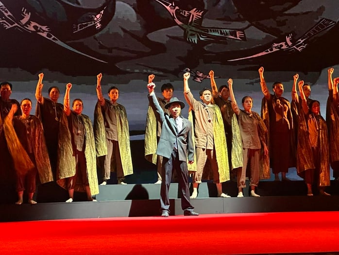 Sin fanfarrias ni exageraciones mediante escenas grandilocuentes, "El Hombre de las Sandalias de Goma", obra recientemente presentada por el Teatro Dramático de Vietnam, ha conmovido profundamente al público con su profunda elección estética: recrear la historia mediante un lenguaje teatral nuevo, sobrio pero cautivador. Es ahí donde la simple imagen de un par de sandalias de goma se convierte en un símbolo de la gran travesía del pueblo vietnamita y del presidente Ho Chi Minh.