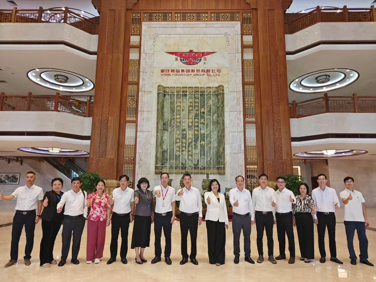 Al finalizar la reunión, la delegación provincial visitó, trabajó y realizó una evaluación del Grupo Alimentario Wenshi, en la ciudad de Yunfu, provincia de Guangdong, China. El Grupo Alimentario Wenshi, fundado en 1983, se ha convertido en un moderno grupo agrícola y ganadero que opera a nivel interregional, con la ganadería y la avicultura como principales industrias y desarrollando industrias afines. Actualmente, el grupo ocupa el puesto 98 entre las empresas privadas de China y el tercero a nivel mundial en el sector ganadero. Para finales de 2024, el Grupo Alimentario Wenshi contaría con 387 filiales en más de 20 provincias, ciudades y regiones autónomas de China; contaría con aproximadamente 43.000 cooperativas agrícolas (granjas familiares) y unos 50.000 empleados.