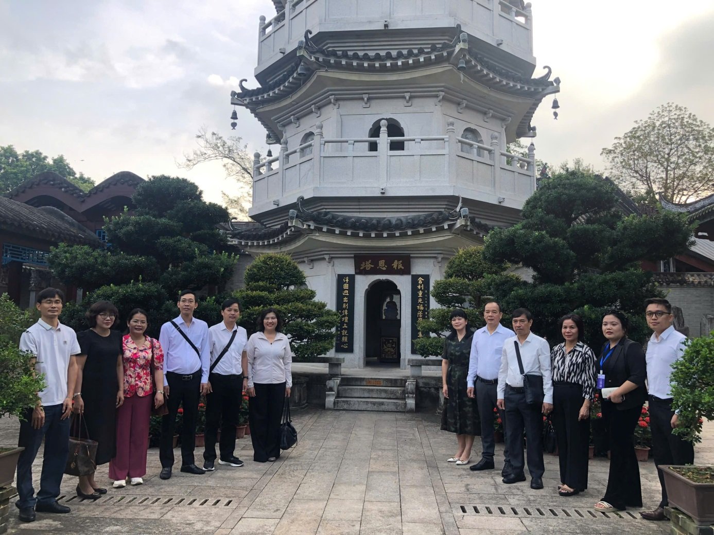 Durante el viaje de trabajo, la Delegación Provincial visitó y recorrió el modelo de Turismo Cultural Zen de la Pagoda Quoc An, también conocida como Pagoda Long Son , ubicada al pie de la Montaña Long Son, Distrito Tan Hung, Ciudad Van Phu, Provincia de Guangdong (China), con una superficie de más de 10.000 m² , construida por el Sexto Patriarca Hui Neng - Fundador de la Secta Zen del Sur de China.