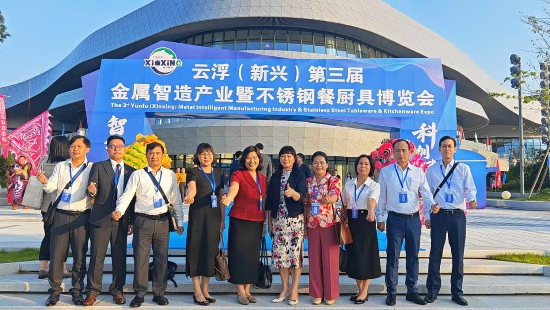 Delegación provincial en la 3.ª Exposición de la Industria de Fabricación Inteligente de Metales y Utensilios de Acero Inoxidable. Foto: Vu Giang