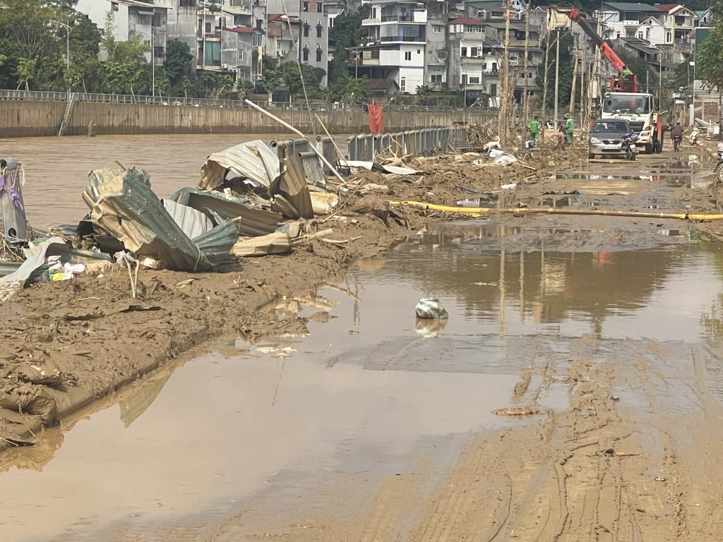 Actualmente, el nivel del agua en las riberas del río continúa disminuyendo, pero el riesgo de deslizamientos de tierra es muy alto. Los Comités Populares de las comunas y distritos de los ríos Bang y Hien se coordinan estrechamente con las fuerzas de seguridad para seguir preparando suficientes recursos humanos y medios para implementar la gestión según el lema "4 in situ"; revisar y contabilizar los daños; y desarrollar un plan para reparar las obras e infraestructura dañadas por las inundaciones.