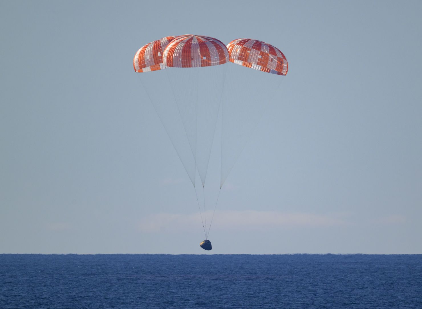 La nave espacial Orion de la NASA, con su tripulación a bordo, aterrizó sin problemas en el mar la mañana del 11 de abril. Foto: NASA
