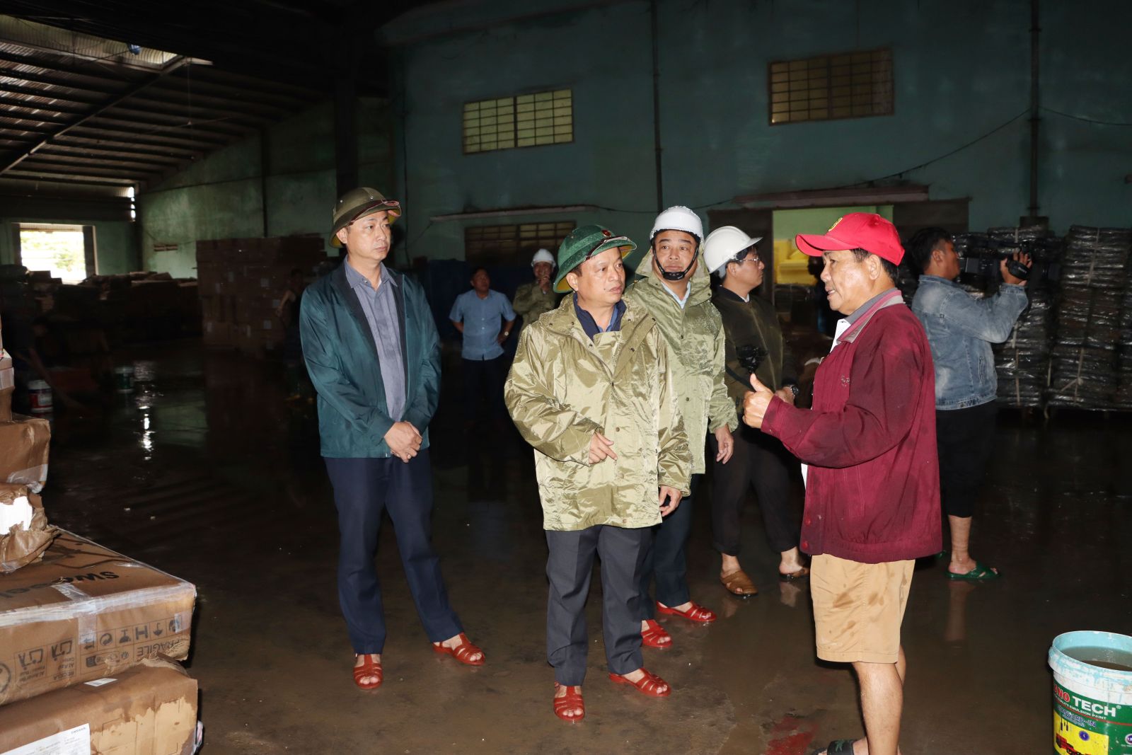 El vicepresidente permanente del Comité Popular Provincial, Nguyen Tuan Thanh, inspeccionó la situación de los daños en Thinh Phu Import-Export Company Limited.