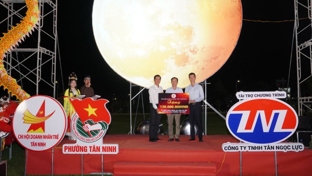 En esta ocasión, la Asociación de Jóvenes Emprendedores de Tan Ninh se coordinó con la Unión de Jóvenes del Barrio de Tan Ninh y filántropos para presentar 700 regalos (incluidos pasteles de luna y linternas) a los niños de la provincia, contribuyendo a una temporada de luna llena llena de amor.