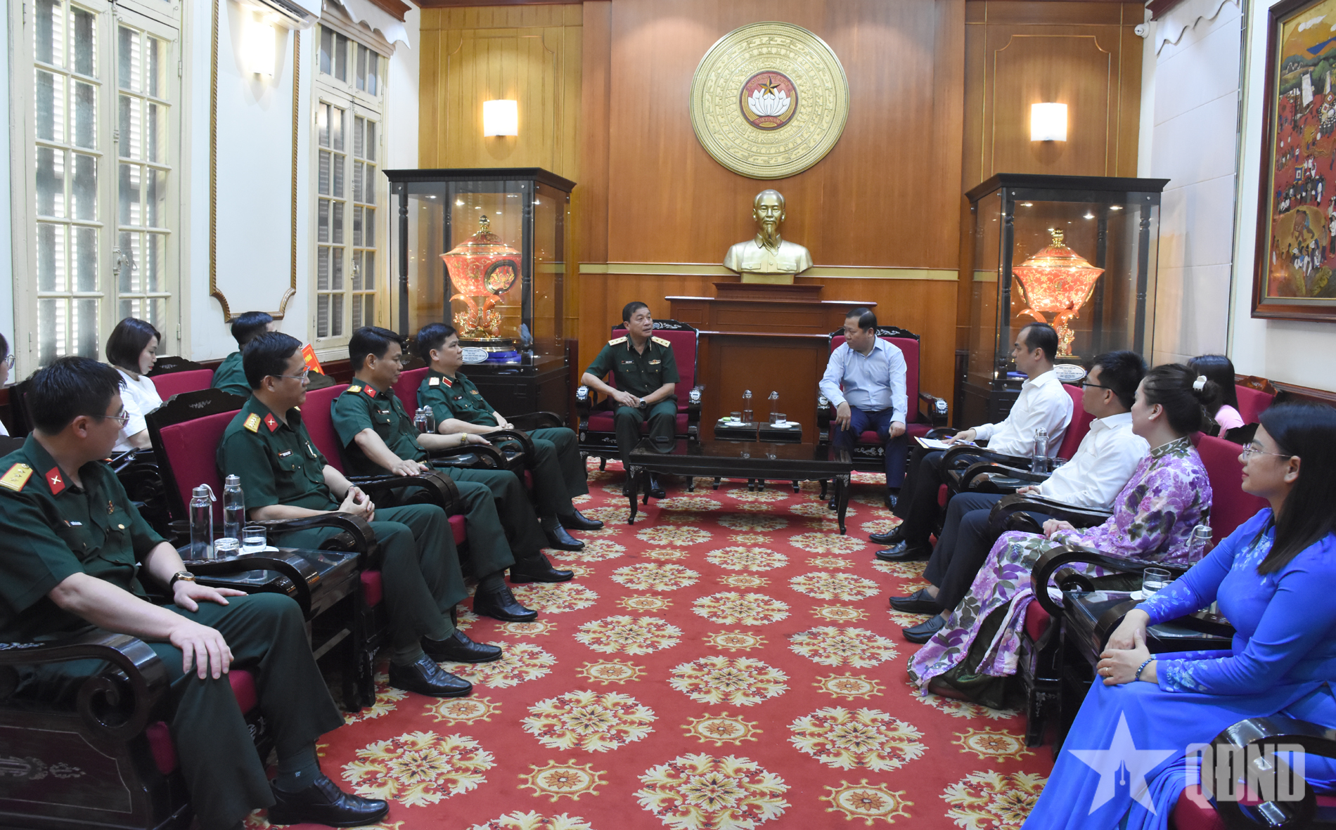 En su discurso en la recepción, el camarada Nguyen Phi Long, miembro suplente del Comité Central del Partido, subsecretario del Comité del Partido del Frente de la Patria, y las organizaciones centrales agradecieron a la Comisión Militar Central y al Ministerio de Defensa Nacional por su cooperación y contribución para ayudar a la gente a superar las consecuencias de los desastres naturales.