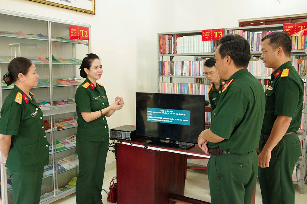 Tras más de un año de implementación del proyecto, hasta la fecha, las actividades de supervisión, gestión, préstamo y devolución de libros se han llevado a cabo principalmente en el ordenador de la biblioteca, actualizando libros valiosos, documentos de liderazgo y directivas, contenido de investigación y formación (no documentos confidenciales) en el portal de la biblioteca. En concreto, la Brigada ha actualizado el catálogo de 6.000 libros, publicado 500 videoclips, 850 noticias y artículos, y más de 200 documentos de todo tipo. En particular, se ha desplegado el sistema de biblioteca digital en agencias y unidades, de las cuales 5 o 6 estaciones se han desplegado con líneas de transmisión de datos militares y equipos para su explotación y uso, conectando, enlazando, compartiendo y utilizando recursos digitales, satisfaciendo las necesidades de búsqueda de información, investigación, estudio y entretenimiento de oficiales y soldados.