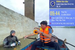 Tras una inspección visual, los pilares y pilares del puente no presentan daños importantes ni inusuales que puedan afectar su capacidad portante. Sin embargo, el puente Linh Cam presenta erosión local en el pilar 3. El puente Ben Thuy presenta una ligera erosión en los pilares T6, T7 y T8, informó el Sr. Ngoc.