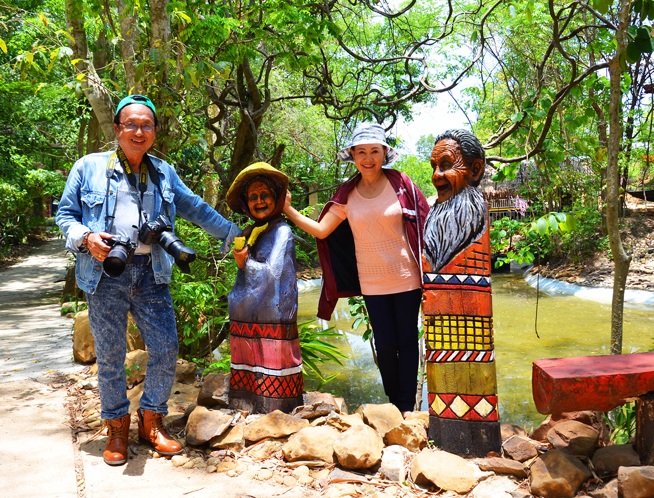 A lo largo de los senderos que recorren el jardín paradisíaco de la Ecozona Troh Bu, se encuentran hileras de animadas estatuas de madera con expresiones curiosas, que alegran tanto a los visitantes que no pueden evitar detenerse a tomarse selfis. (Foto: Recopilada)