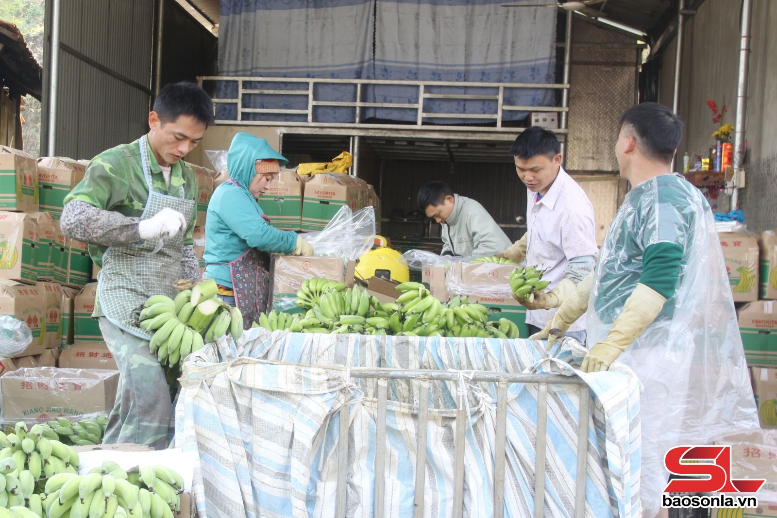 En la aldea de Cup, Musa Green Joint Stock Company ha invertido 15 mil millones de VND en un sistema para preservar de 4.000 a 6.000 toneladas de productos agrícolas por año y producir 1 millón de metros cúbicos de fibra de banano y procesar 5 toneladas de bananos por día en polvo de banano, creando un sustento estable para 60 trabajadores locales. Para asegurar un suministro sostenible de materias primas para la fábrica, la comuna de Muong Bu ha planificado un área de materia prima para el cultivo de bananos en un área contigua, con un área total de casi 570 hectáreas en Cup, Na Nong, subárea 2, aldea de Gian, Muong Bu, Bung Dien, Hua Bo, aldea de Chon y Na Xi. Al mismo tiempo, ha propuesto emitir códigos de área de siembra, formando un área de producción de productos básicos concentrada y especializada para cultivos clave como el mango y el banano.