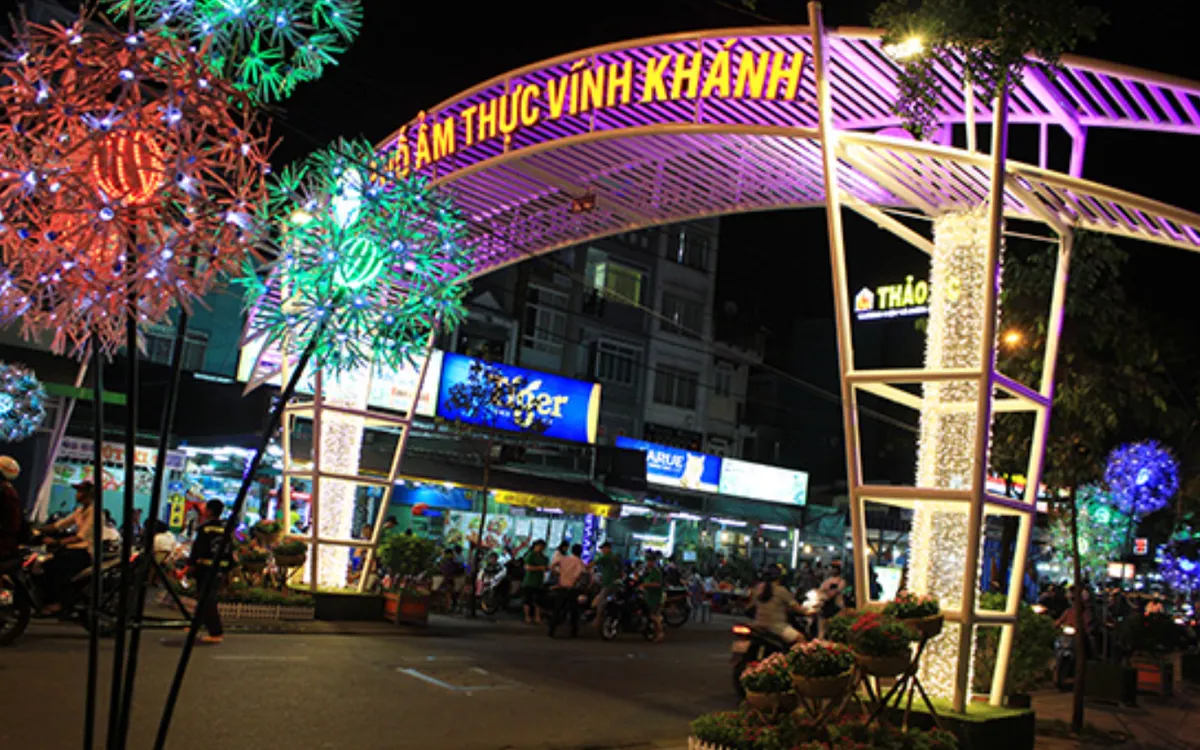 Al llegar a Vinh Khanh, los visitantes pueden disfrutar de todo tipo de platos a la parrilla, picar calamares secos de los vendedores ambulantes, ver a los artistas callejeros actuar en el típico ambiente de Saigón: el sonido de las sartenes chisporroteando, el sonido de los vasos chocando, el sonido de las motos... Es esta mezcla energética la que crea el atractivo único del barrio.