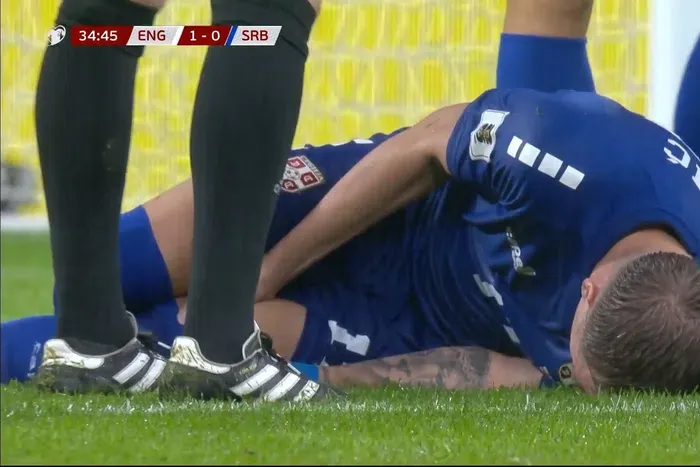 در دقیقه ۲۸ بازی در ومبلی، بوکایو ساکا پس از یک همکاری خوب، دروازه انگلیس را باز کرد. اما در دقیقه ۳۶، جو ورزشگاه پس از مصدومیت شدید ایوان ایلیچ، هافبک صربستان، متشنج شد.