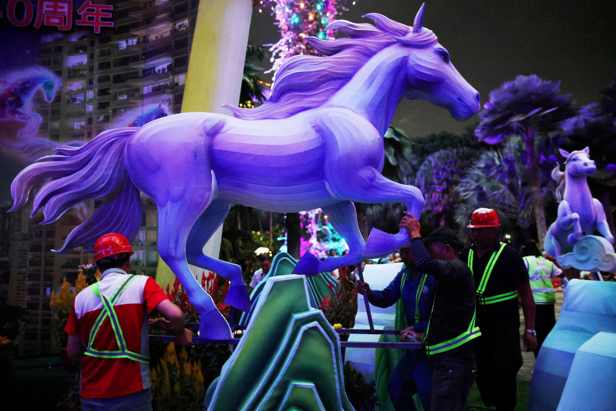 در ۱۳ فوریه، کارکنان در سنگاپور مشغول انجام آخرین مراحل نصب چراغهایی به شکل اسب برای جشن سال نو قمری بودند.