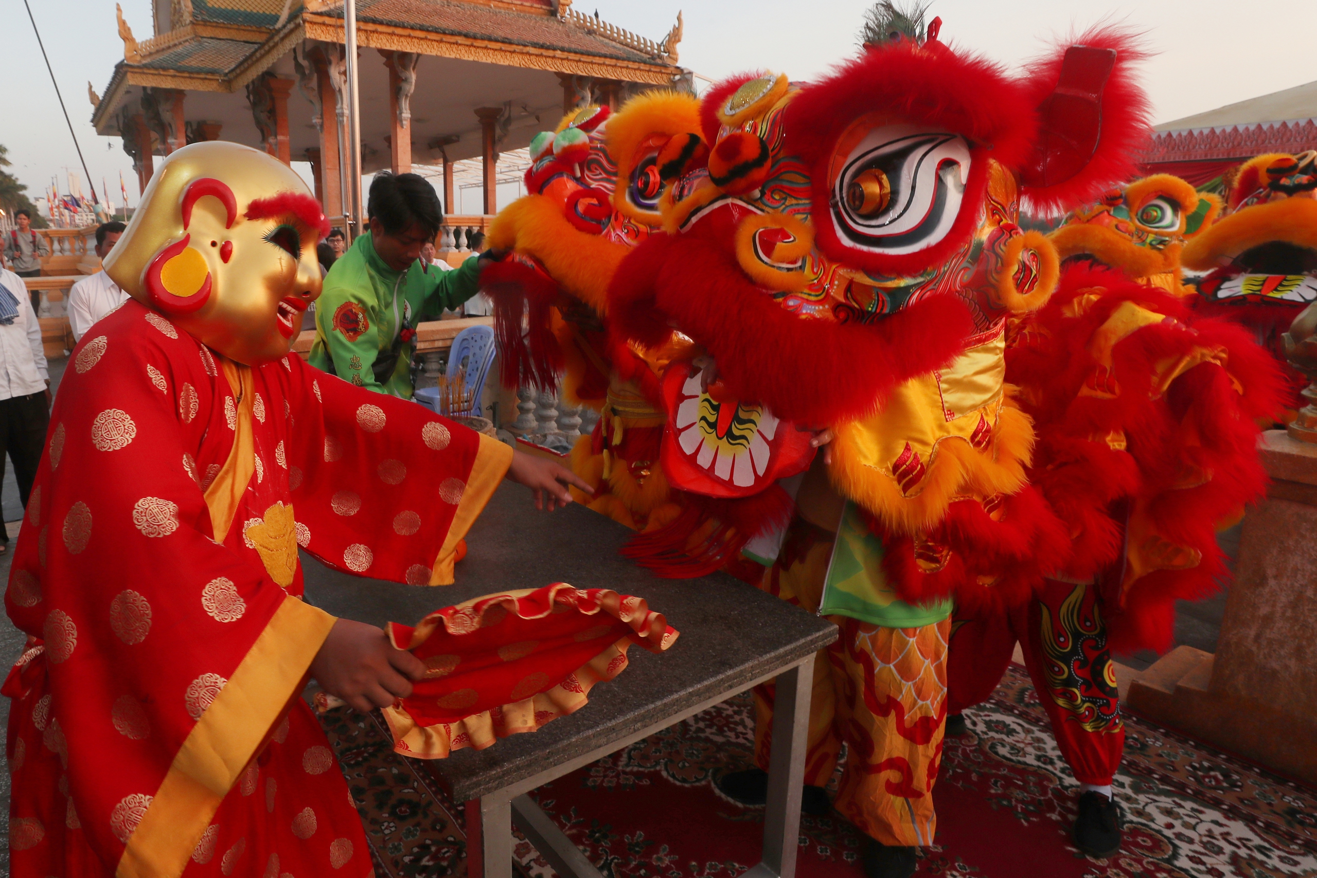 جشنواره رقص شیر در مقابل کاخ سلطنتی در پنوم پن، کامبوج، ۱۶ فوریه.