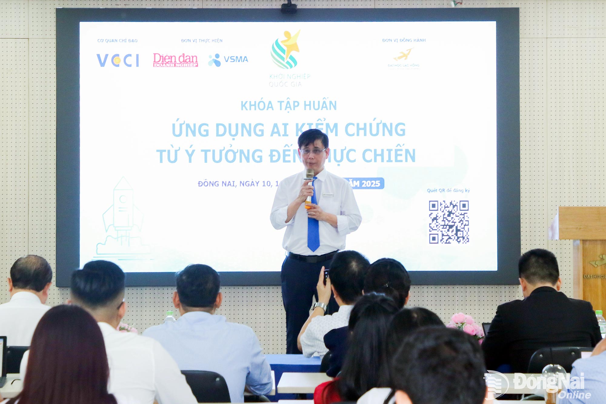 | لام تان هین، مدیر دانشگاه لاک هونگ، درباره آموزش کارآفرینی در مدارس صحبت میکند. عکس: وونگ دِ |