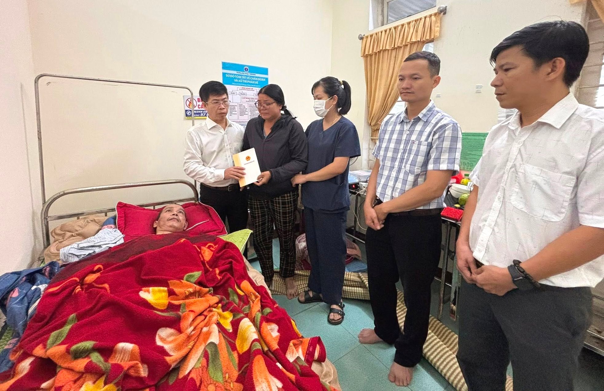 خانواده خانم هونگ فقیر هستند و پسرشان، آقای نگوین ون ها، از خونریزی مغزی رنج میبرد و سالهاست که در بستر بیماری است و توانایی کار کردن را کاملاً از دست داده است. در مواجهه با شرایط پیچیده آب و هوایی، برای اطمینان از ایمنی، کمیته مردمی بخش، عصر روز ۲۲ اکتبر، به سرعت نیروها و امکانات لازم را برای تخلیه کل خانواده به ایستگاه بهداشت بخش آن کو، ساختمان شماره ۳ (۱۱۹ وو ون کیه) بسیج کرد تا از سیل در امان باشند.