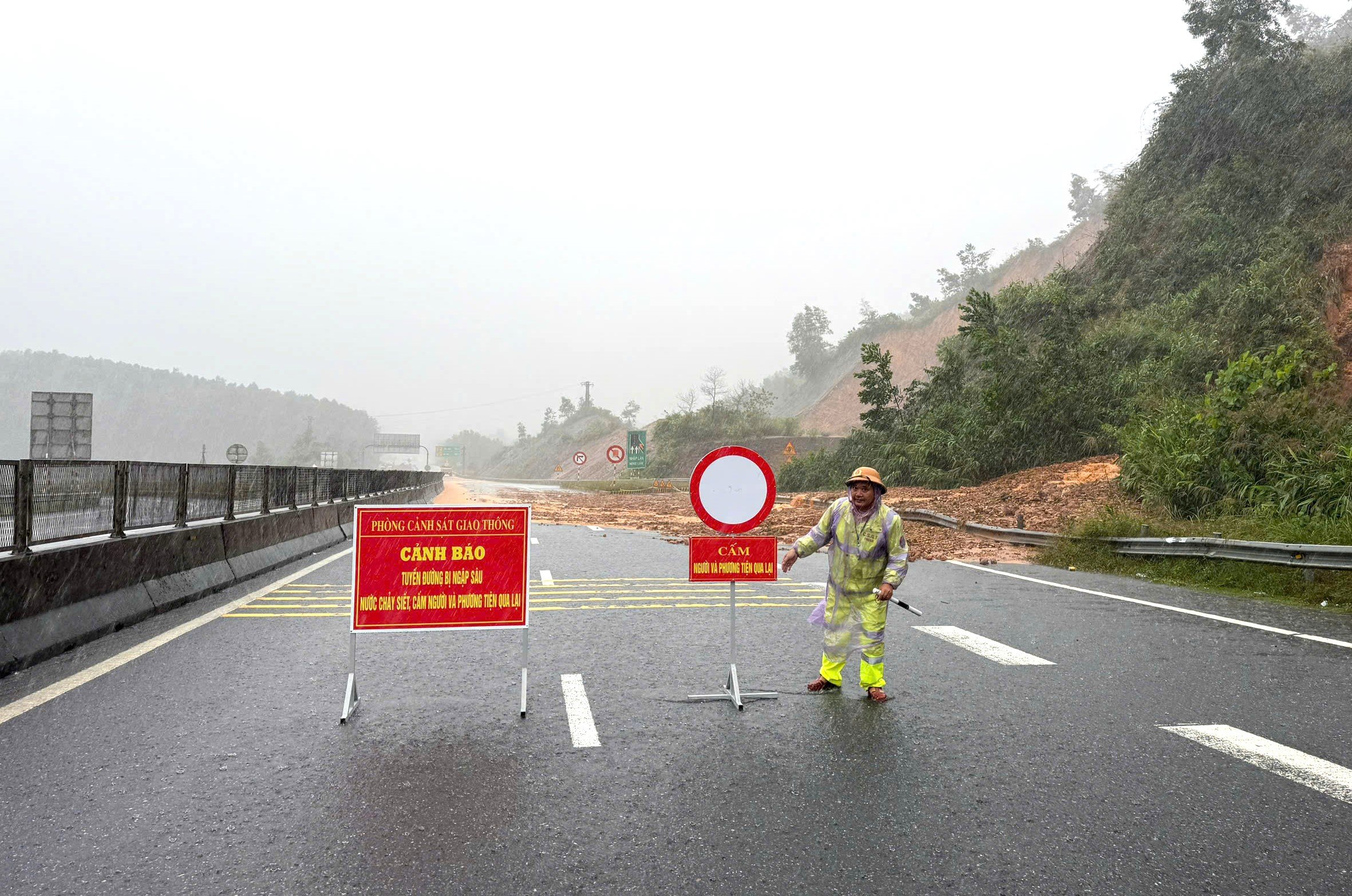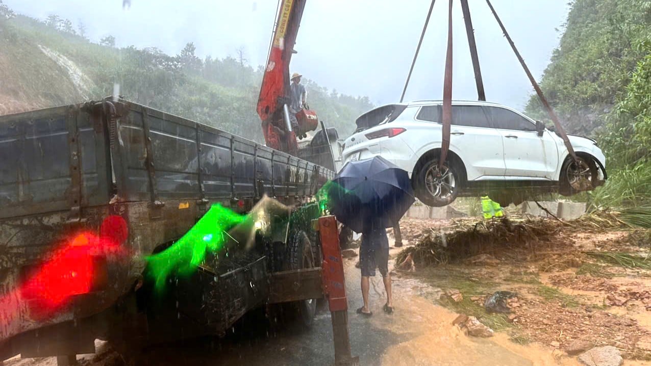 در کیلومتر ۱۲ این بزرگراه، خودرویی با پلاک ۲۸۱.XX به دلیل رانش زمین گیر افتاده بود. بلافاصله، اداره راهنمایی و رانندگی شهر هوئه نیروها و خودروهایی را برای کمک به بیرون کشیدن خودرو از منطقه خطر اعزام کرد و با واحدهای عملیاتی برای پاکسازی سنگ و خاک و تنظیم ترافیک هماهنگی لازم را انجام داد.