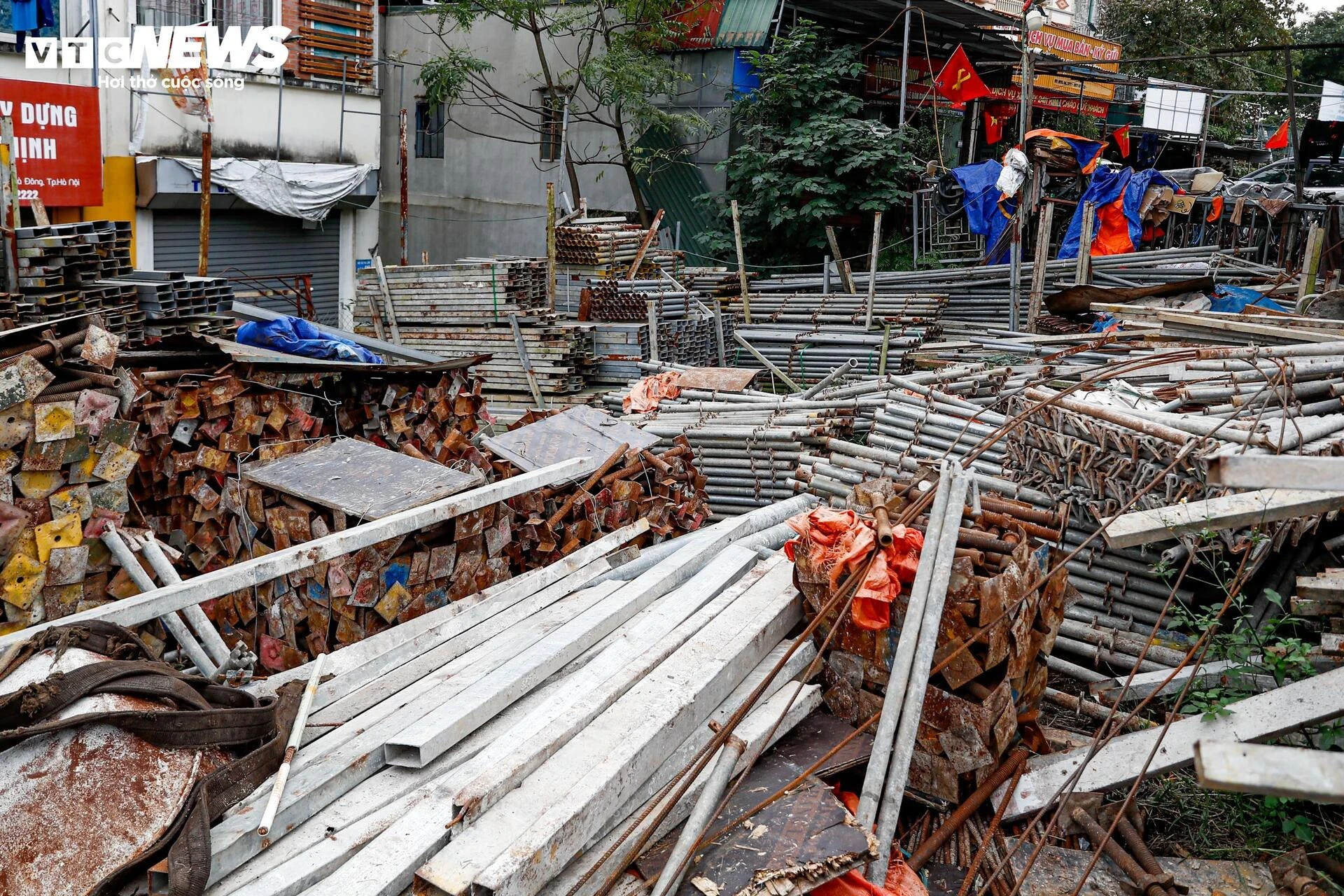 مصالح ساختمانی یک فروشگاه درست بیرون از محوطه بازار روی هم انباشته شده بود.