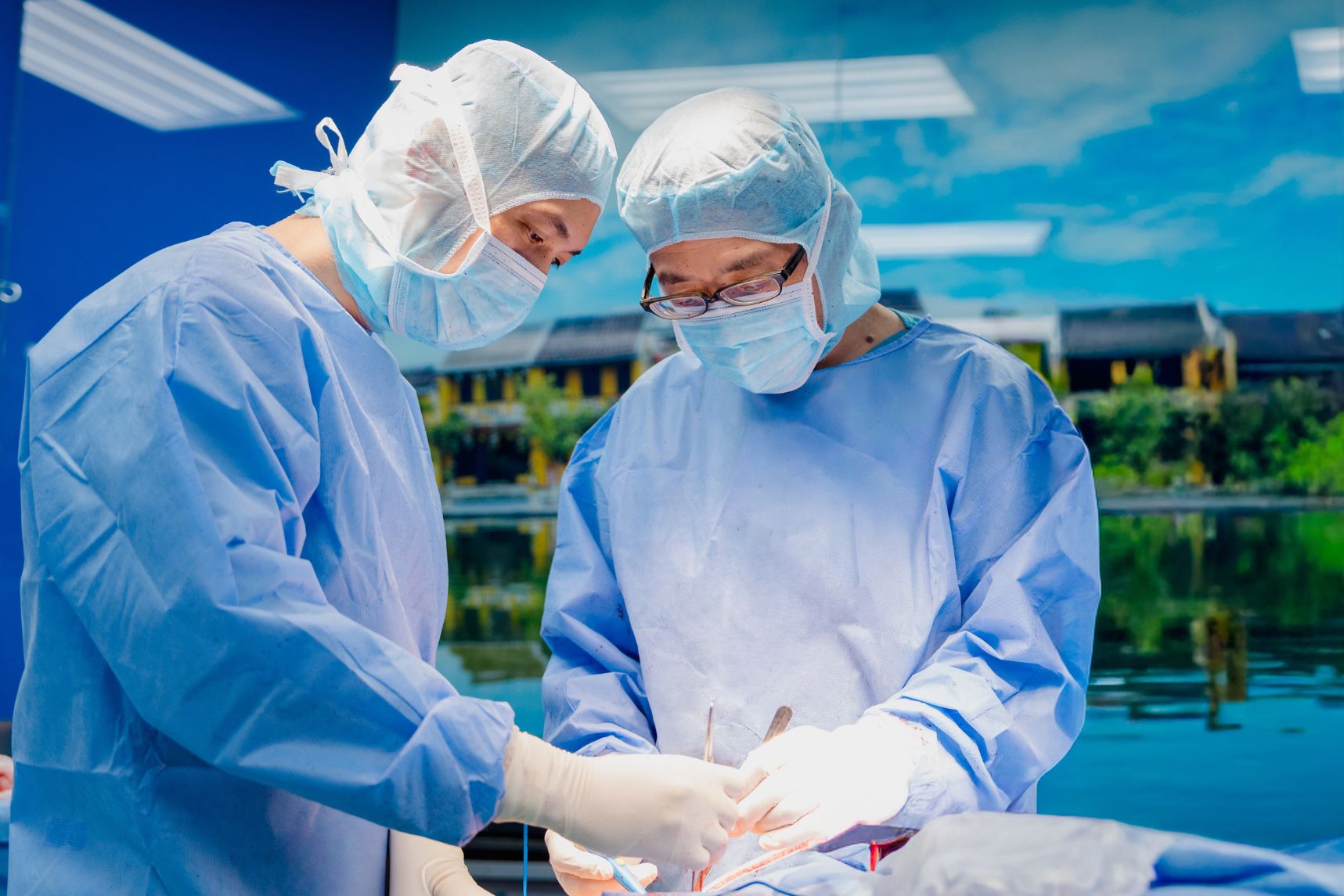 | پروفسور تاکافومی و دکتر لو کوانگ هوی عمل جراحی تعویض زانو را بدون بریدن تاندونها انجام دادند. |
