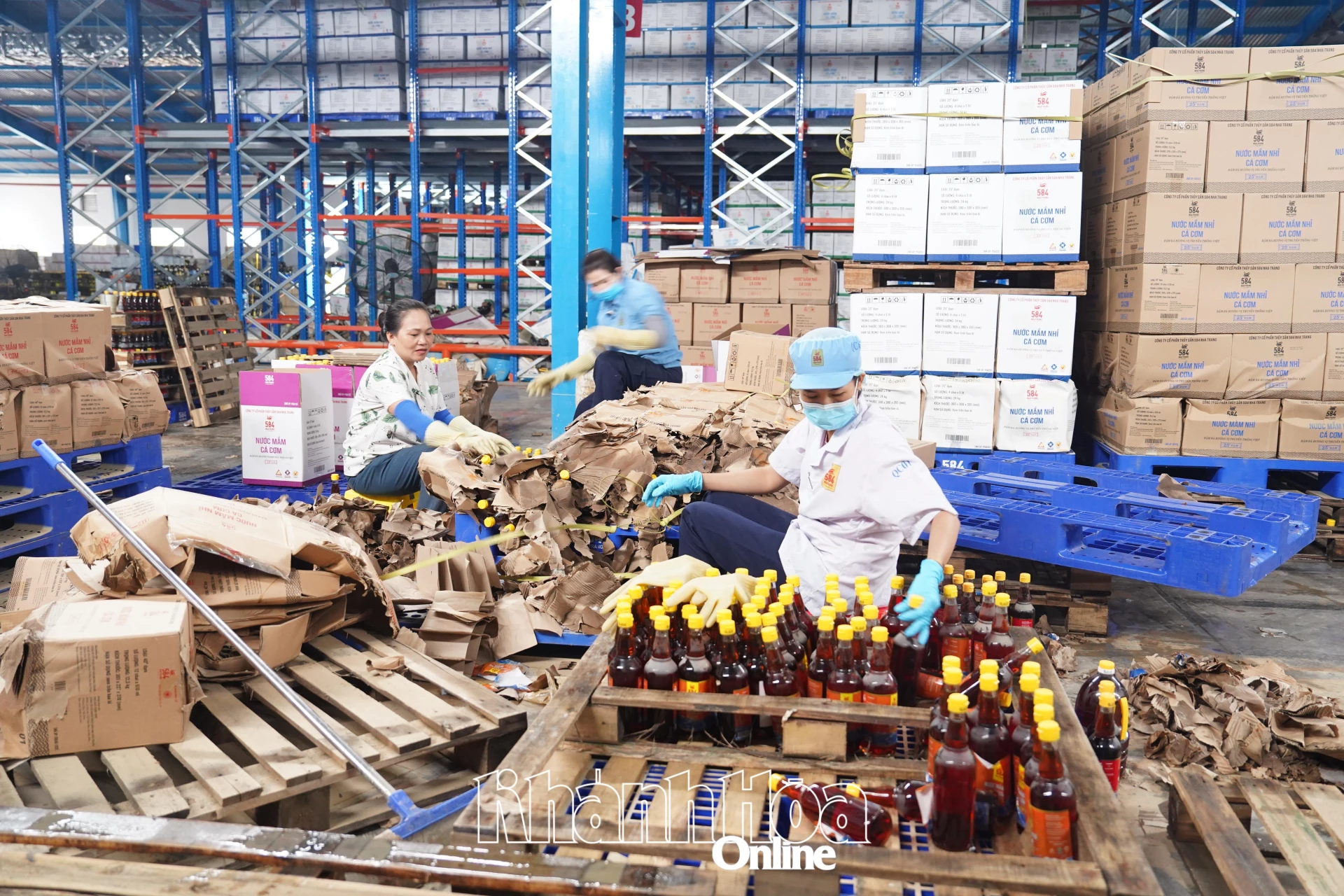 | کارگران شرکت سهامی غذاهای دریایی Nha Trang 584 محصولاتی را انتخاب میکنند که کارتنهای آنها توسط آب آسیب دیده است. |
