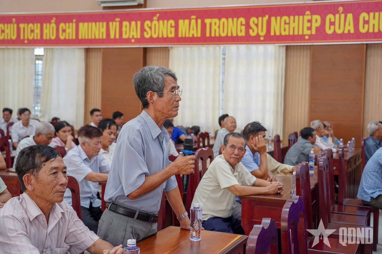 سرلشکر هوین ون نگون، معاون کمیسر سیاسی منطقه ۹ نظامی، برنامه عملیاتی را در جلسه با رأیدهندگان ارائه کرد. |