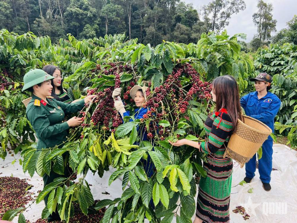 سرگرد روآن تی نگوک هائو و اعضای اتحادیه زنان این واحد، قهوه برداشت میکنند. |