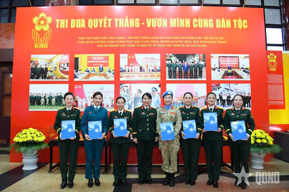 سرگرد روآن تی نگوک هائو (سمت راست) هدیهای از کمیته زنان نظامی دریافت کرد و با نمایندگان شرکتکننده در یازدهمین کنگره تقلید نظامی برای پیروزی عکس یادگاری گرفت. |